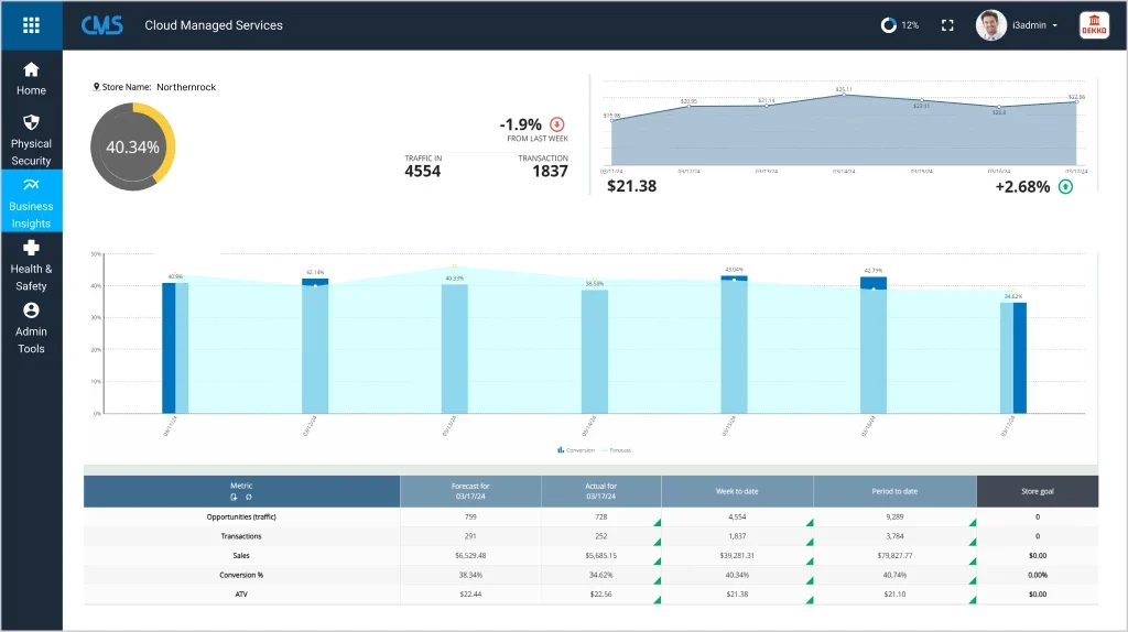 Access comprehensive traffic reports, conversion metrics, and performance dashboards remotely through i3’s Cloud Managed Services; allowing monitoring throughout all locations from a single interface.